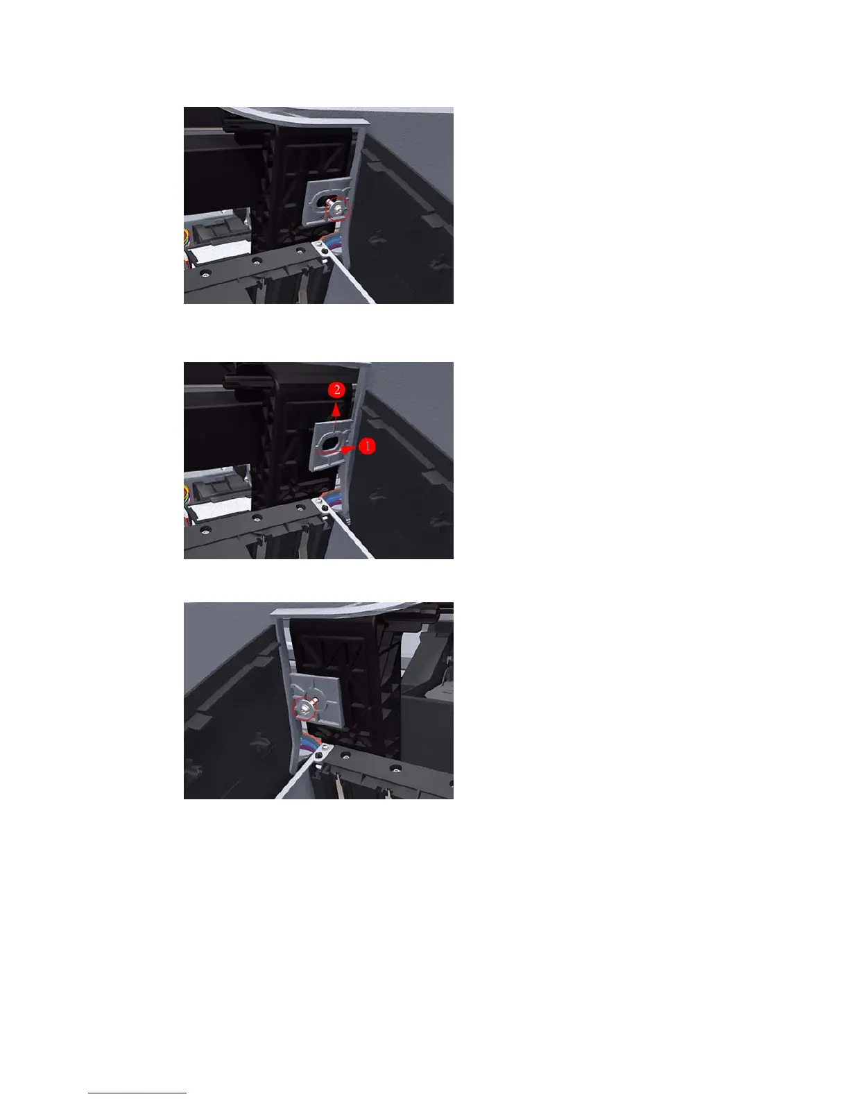 10. Remove the front T-15 screw that secures the front left side of the Top Cover to the printer.