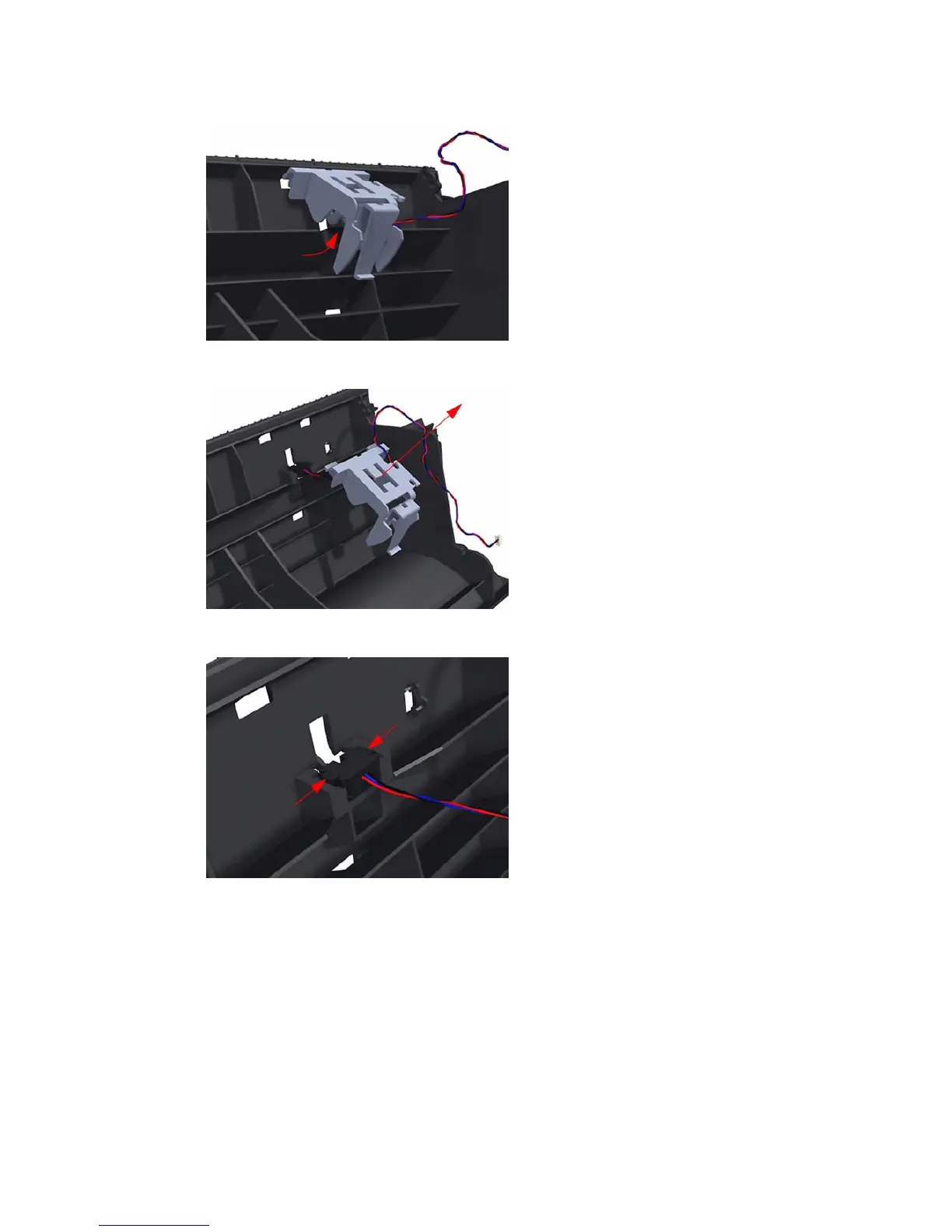 8. Squeeze the Out Of Paper Sensor attachment clips to remove it from the Clean Out Assembly.