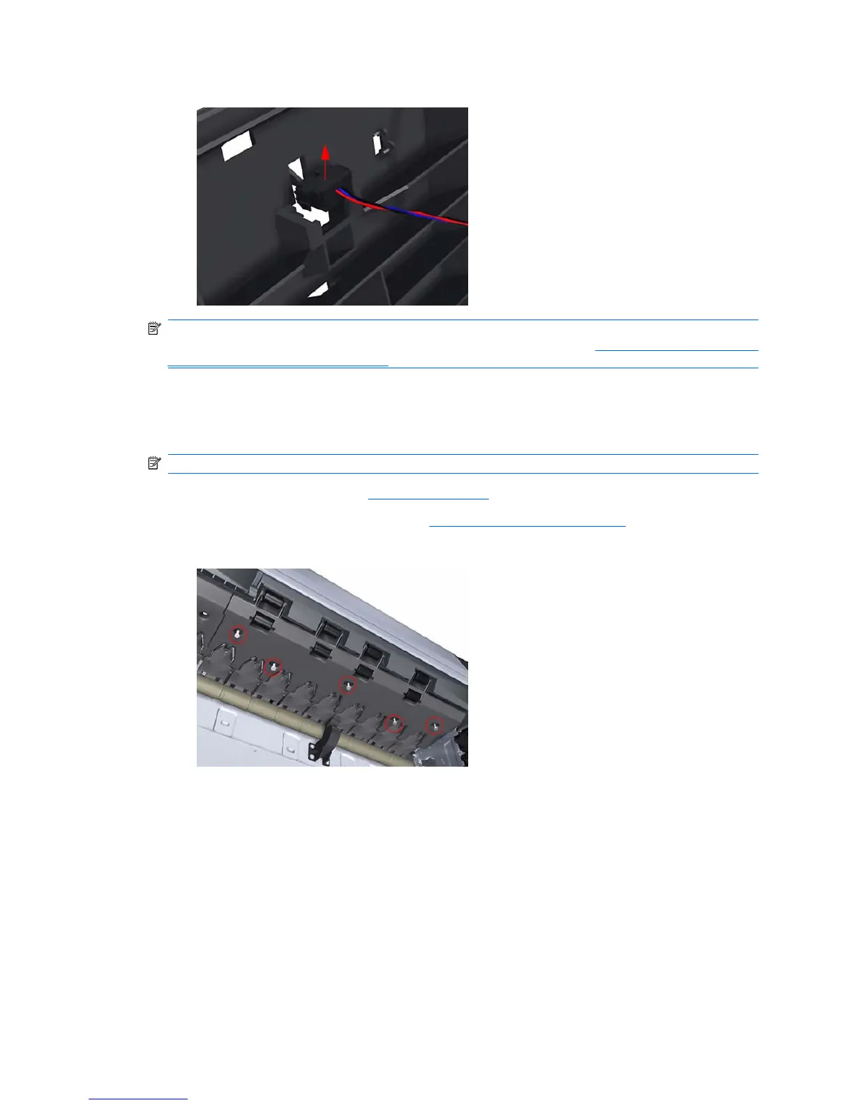 3. Remove five T-15 screws that secure Left Roll Guide to the printer.