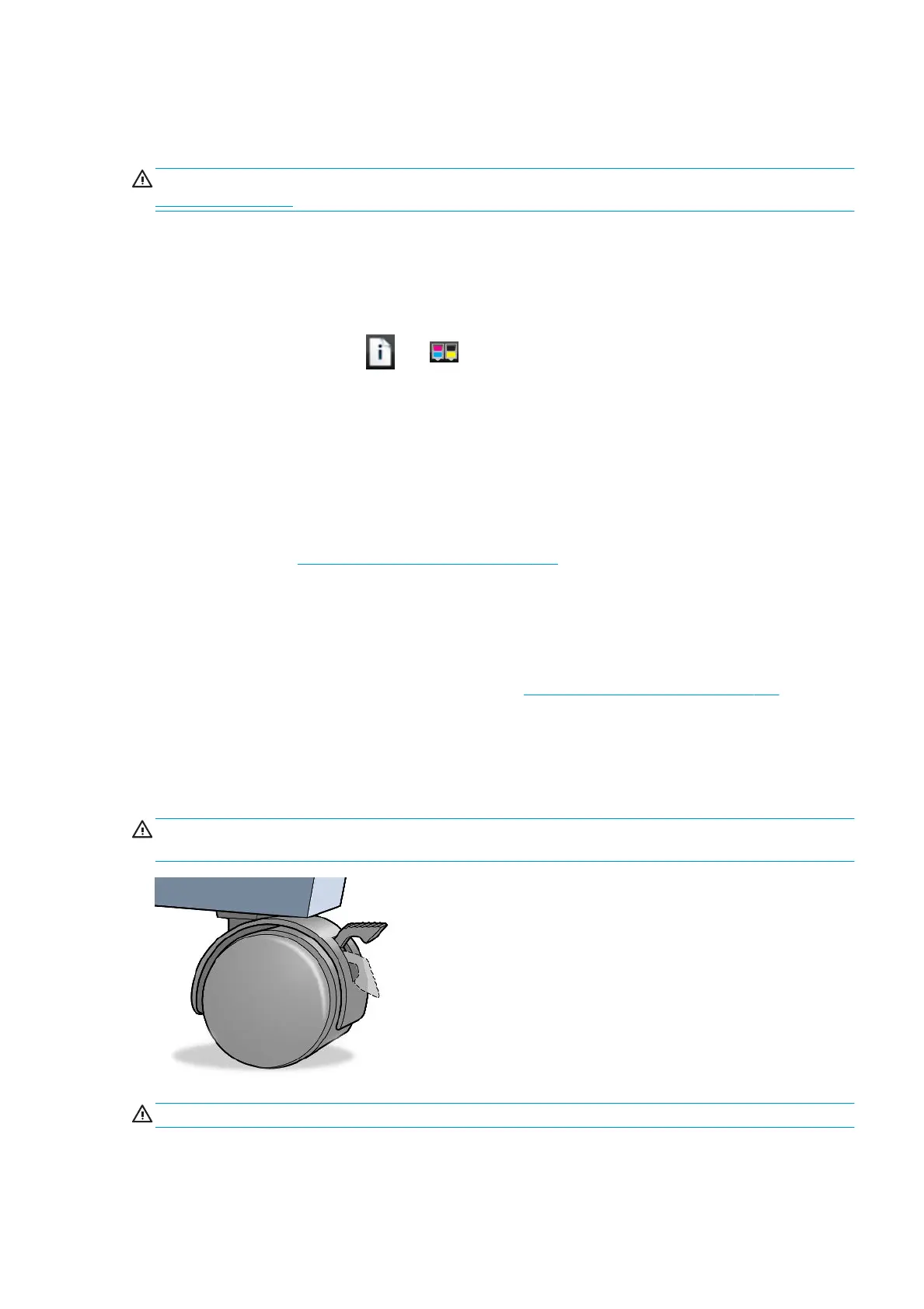 CAUTION: Make sure the printer wheels are locked (the brake lever is pressed down) to prevent the printer