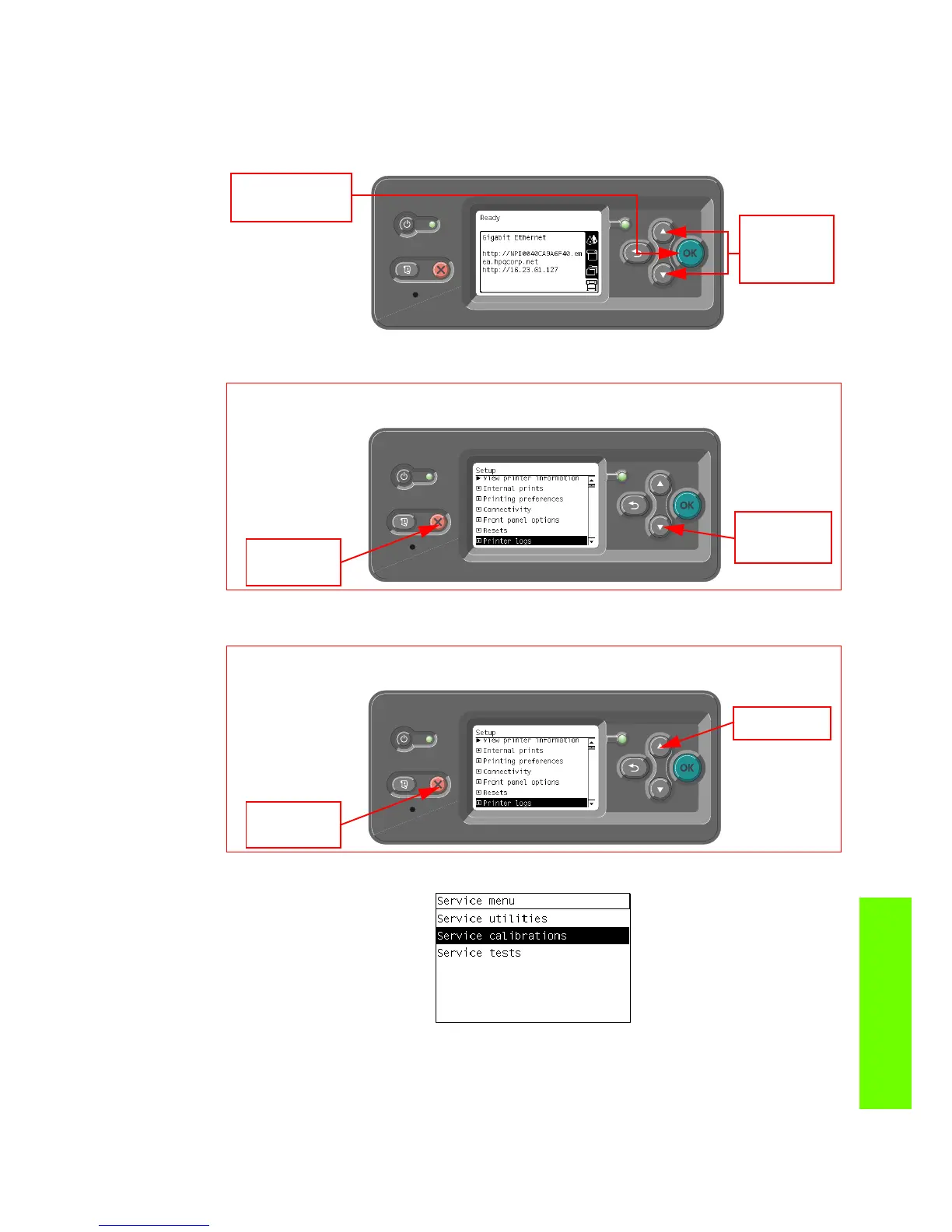 4. Use the Arrow keys to scroll to the “Service Calibrations” menu and press the Enter key.