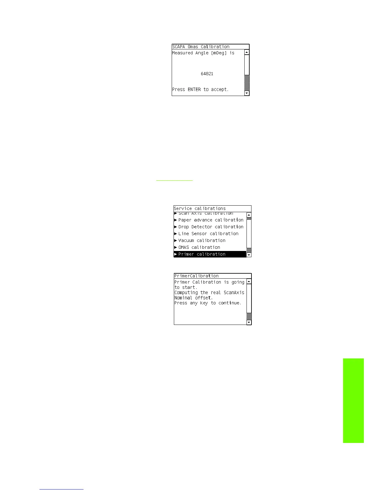 3. In the Service Calibrations submenu, scroll to “Primer Calibration” and press Enter.