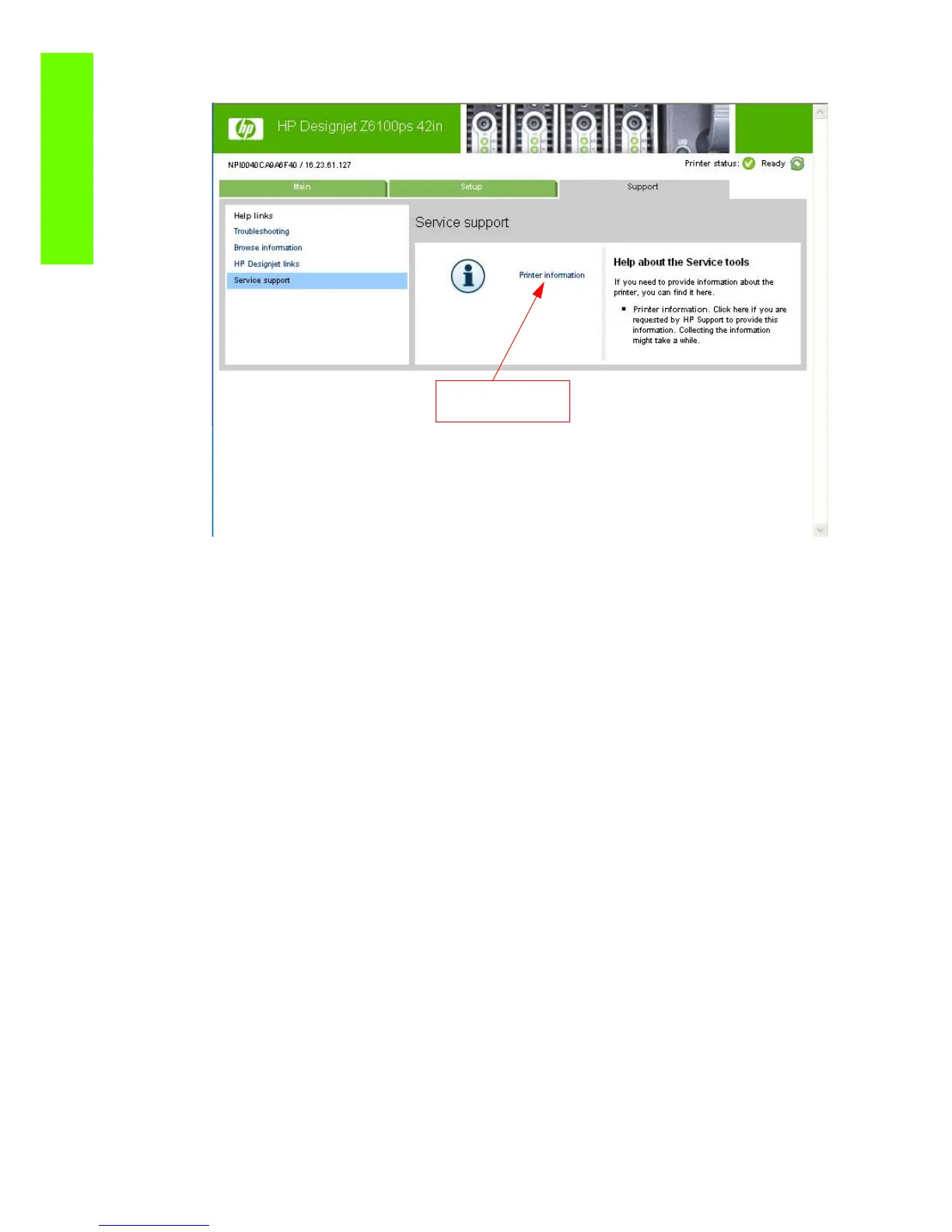 Even if the Printer cannot print, the Information Pages are still accessible through the Embedded Web