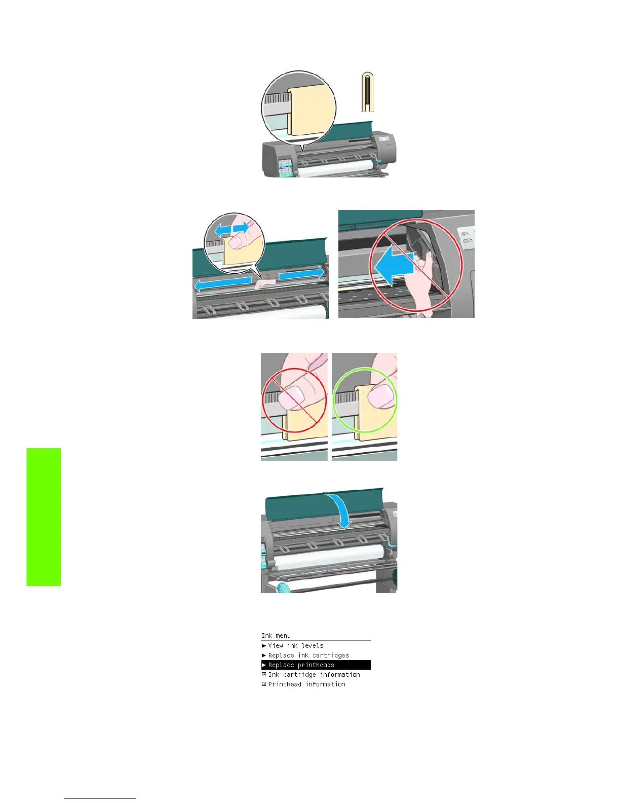 9. From the Front Panel select the ink icon and select ‘Replace Printheads’. The printhead carriage