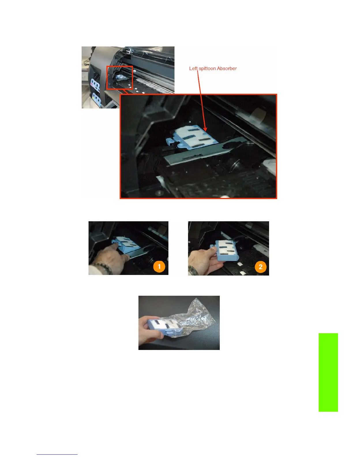 Open the window and locate the left spittoon absorber, as shown in the attached picture.