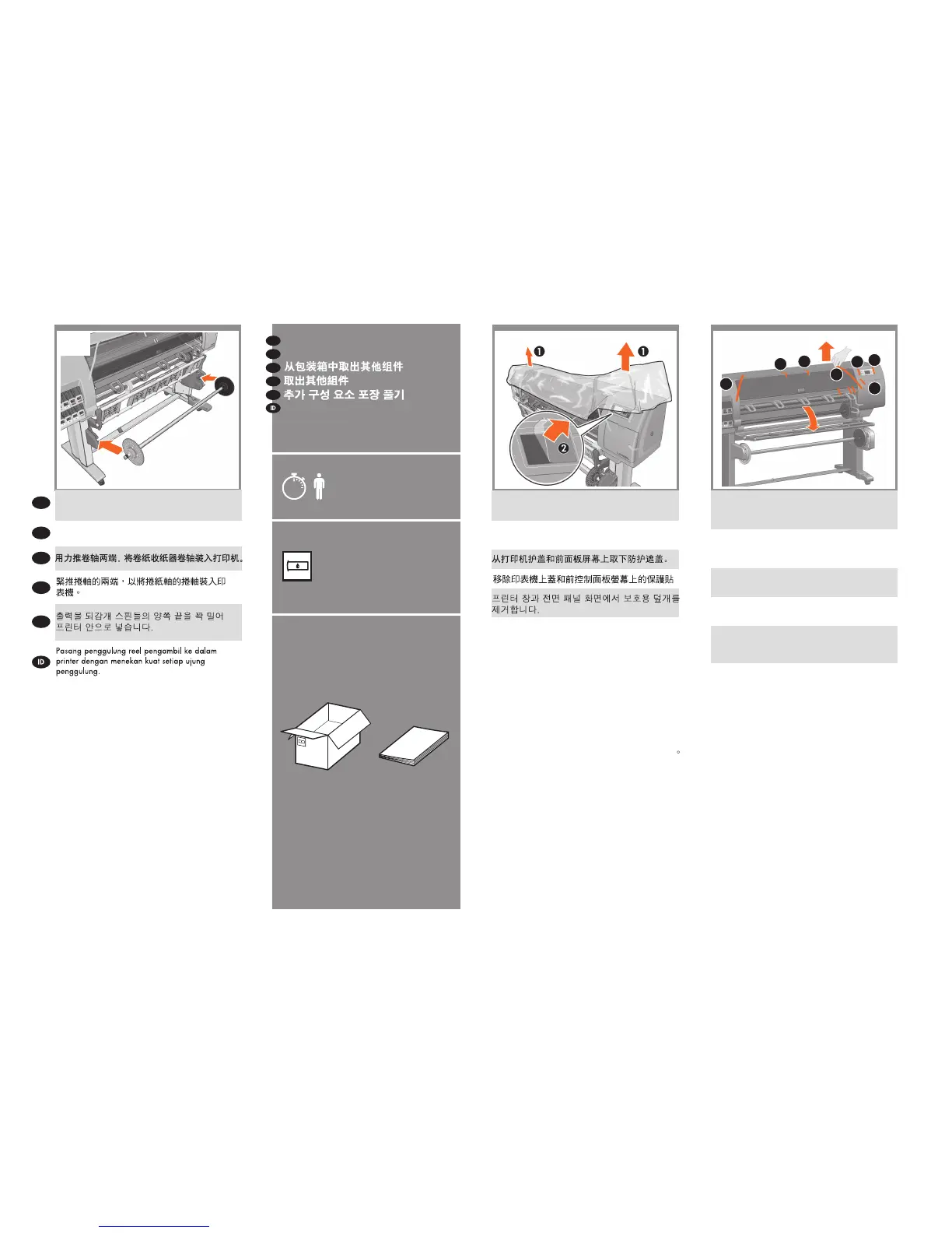 從印表機延伸架上以及兩個後方延伸架上撕掉標記 1