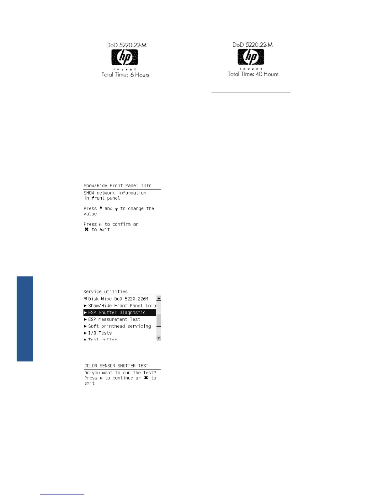 1. In the Service Utilities submenu, select ESP Shutter Diagnostic and press OK.