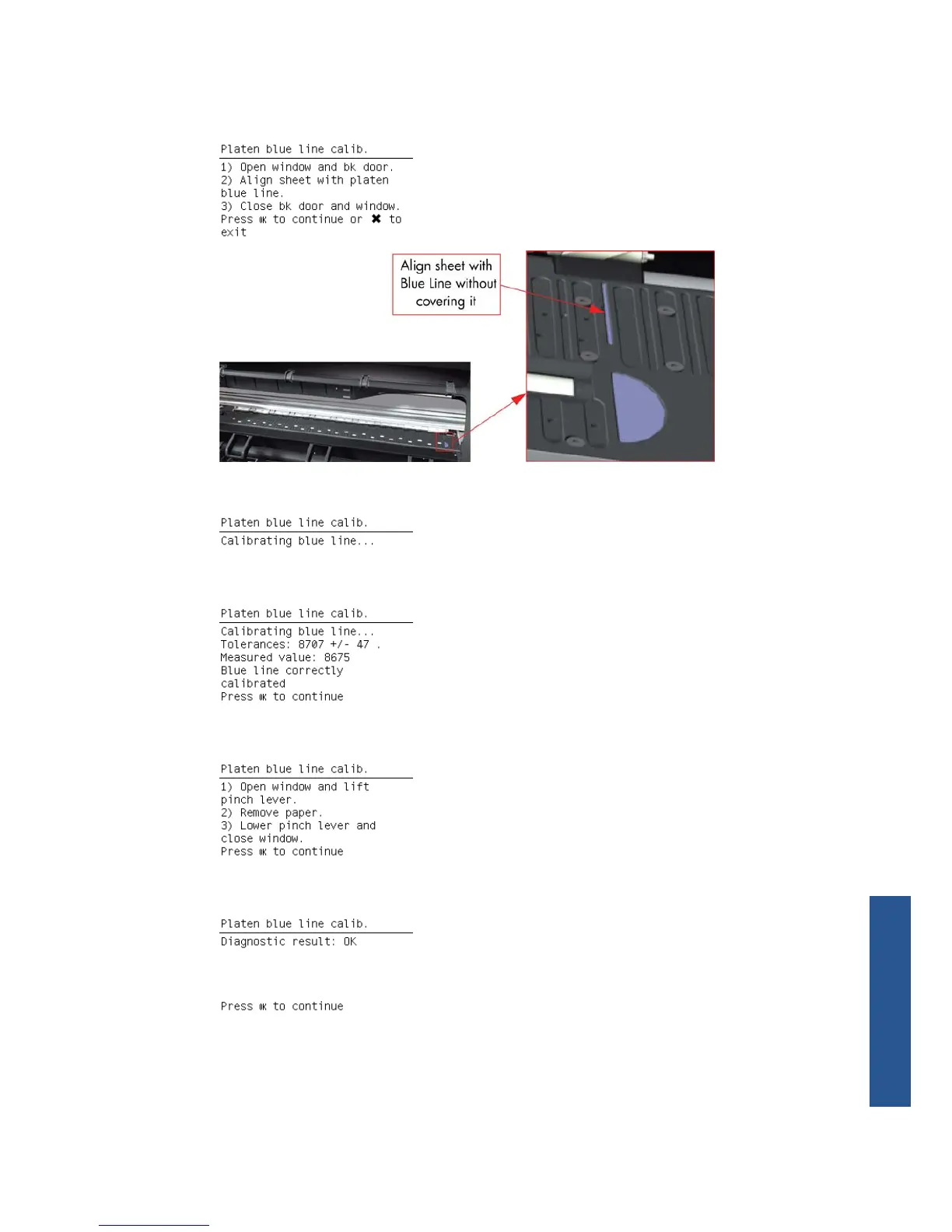 4. Follow the instructions on the front panel, using a sheet of white paper. Then press OK to continue