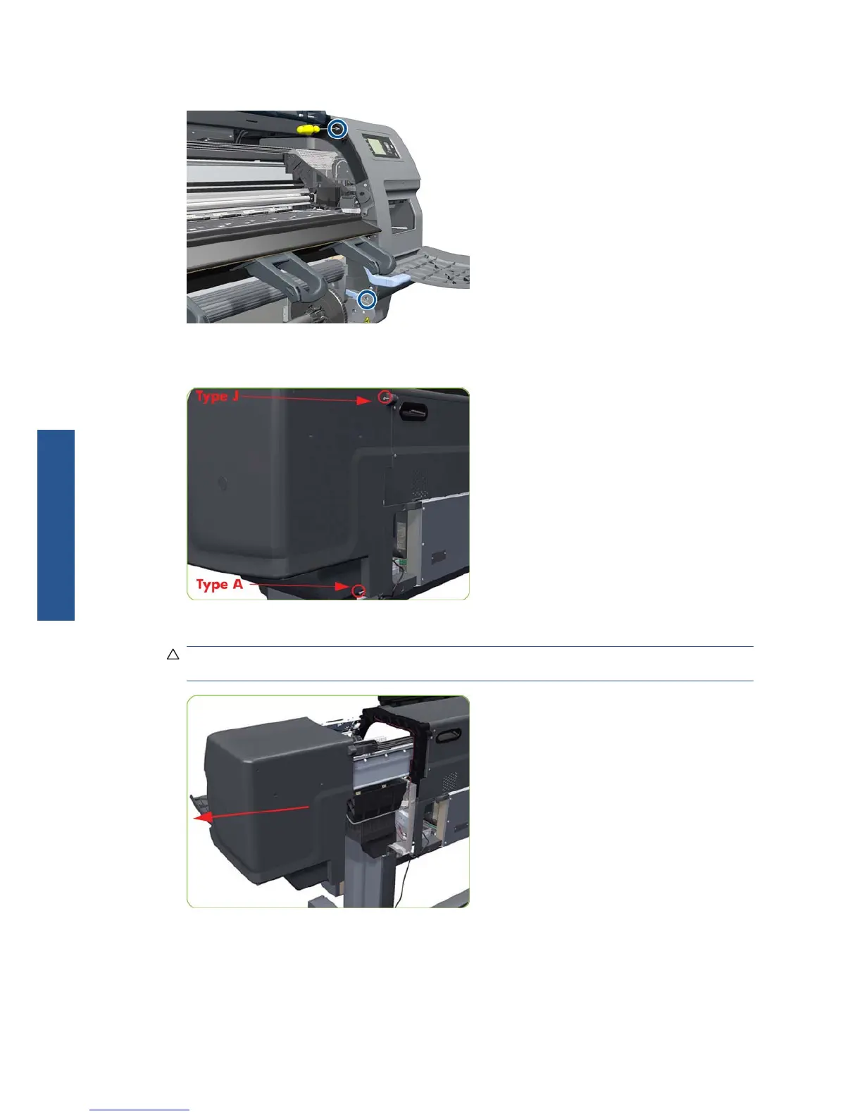 5. Remove one T-15 screw (Type J) and one T-20 screw (Type A) that secure the Right Cover from
