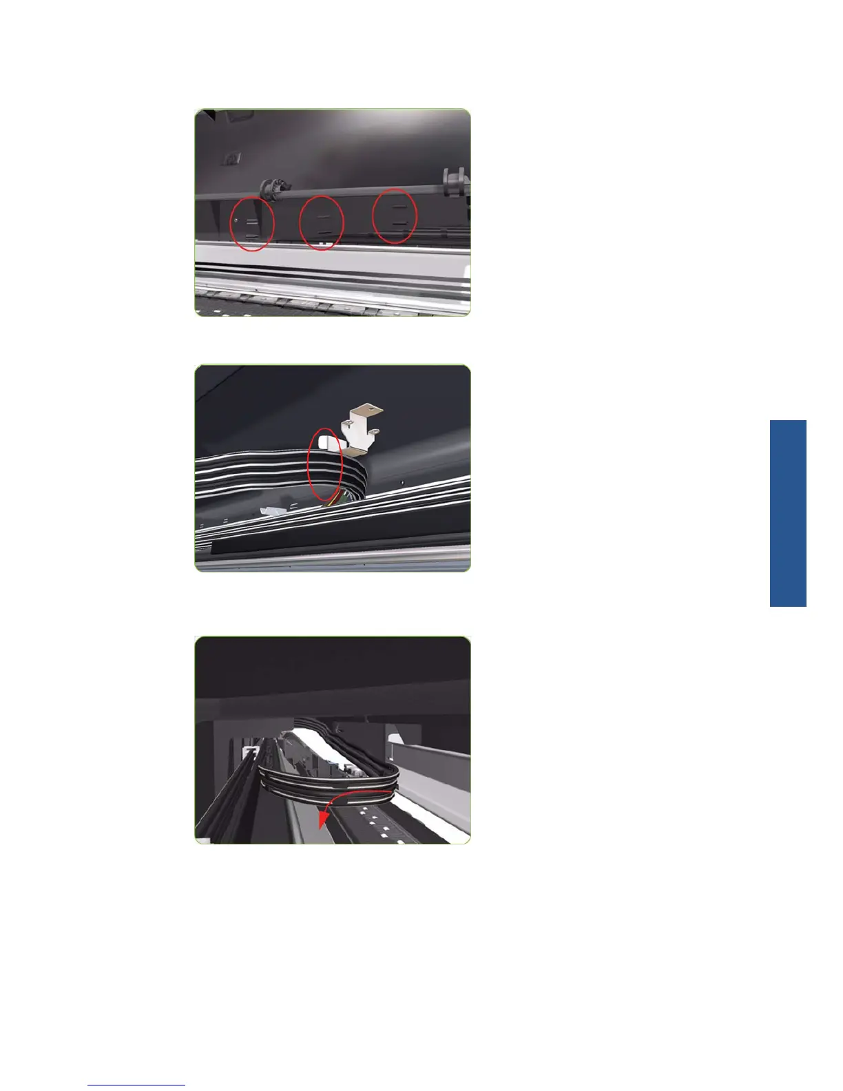 5. Remove the Ink Supply Tubes and Trailing Cable from within the Top Cover and lay them on the