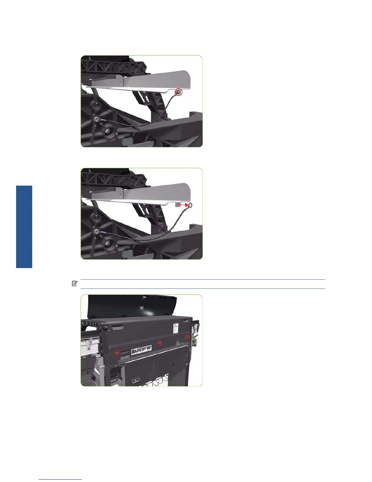 8. Remove the three T-15 screws (Type G) that secure the Rear Door.