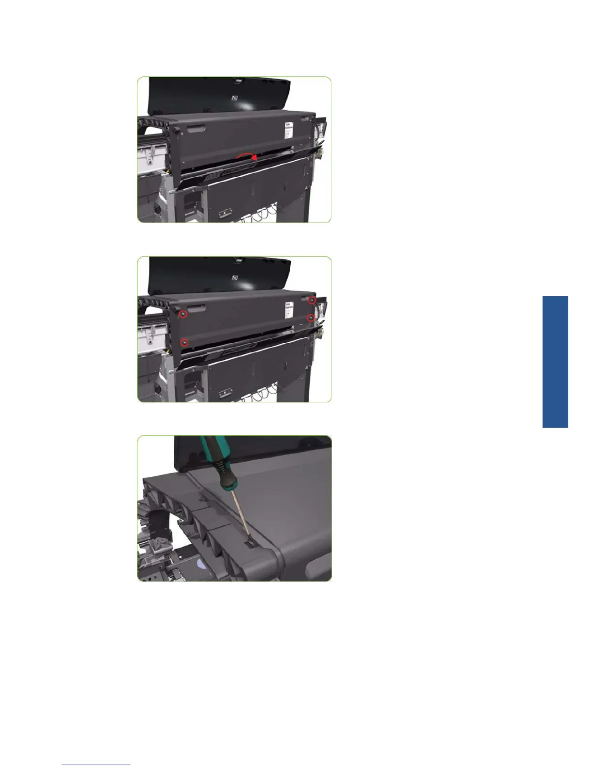 10. Remove four T-15 screws (Type H) that secure the Top Cover from the rear of the printer.