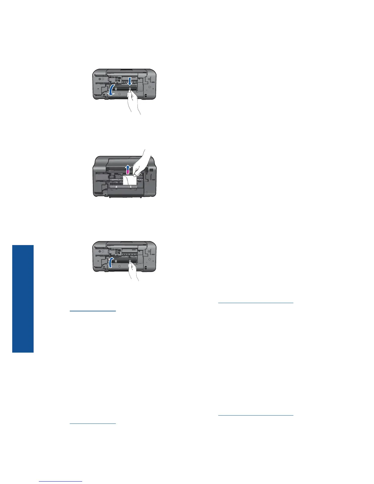 • If the paper jam is located inside the printer, open the cleanout door located on