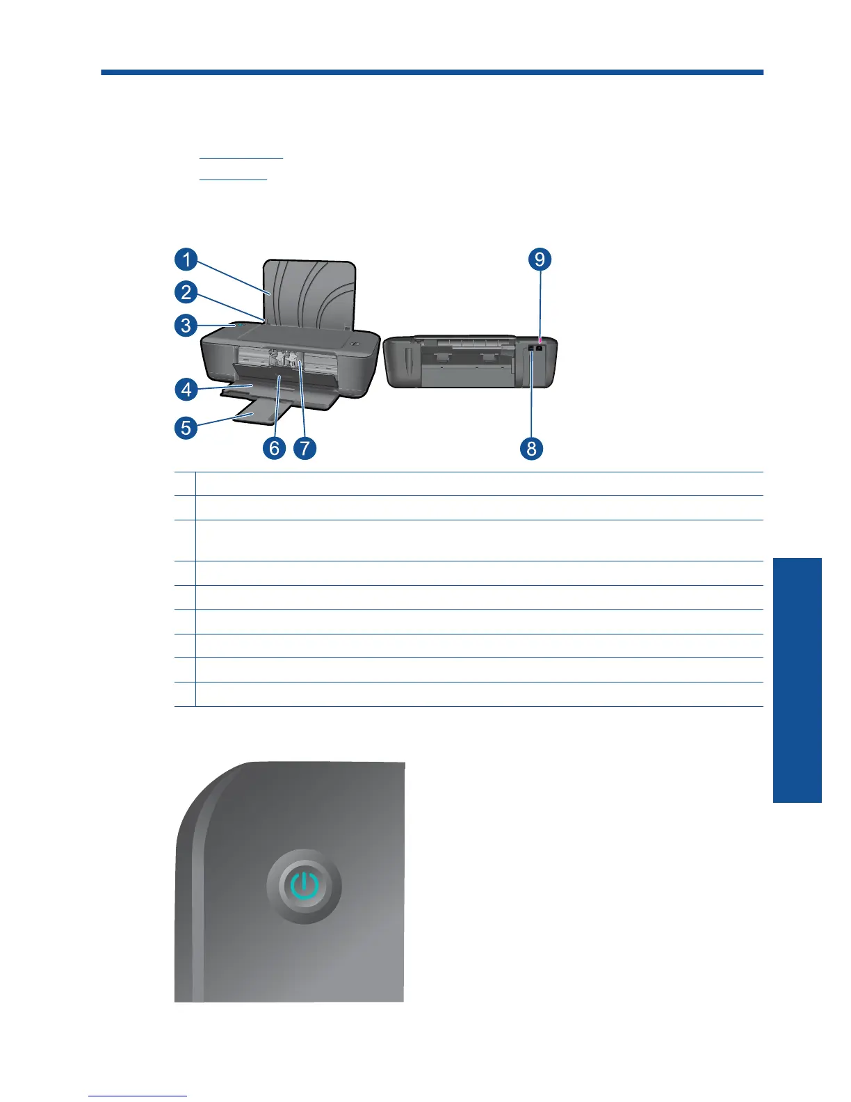 3 On button: Turns the product on or off. When the product is off, a minimal amount of power is