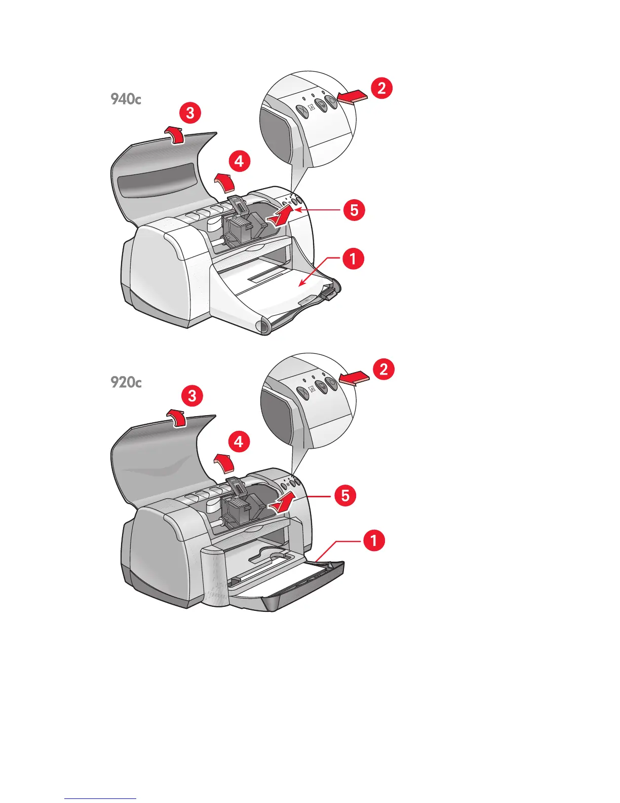 1. Out tray (in down position) 2. press Power button 3. open top cover