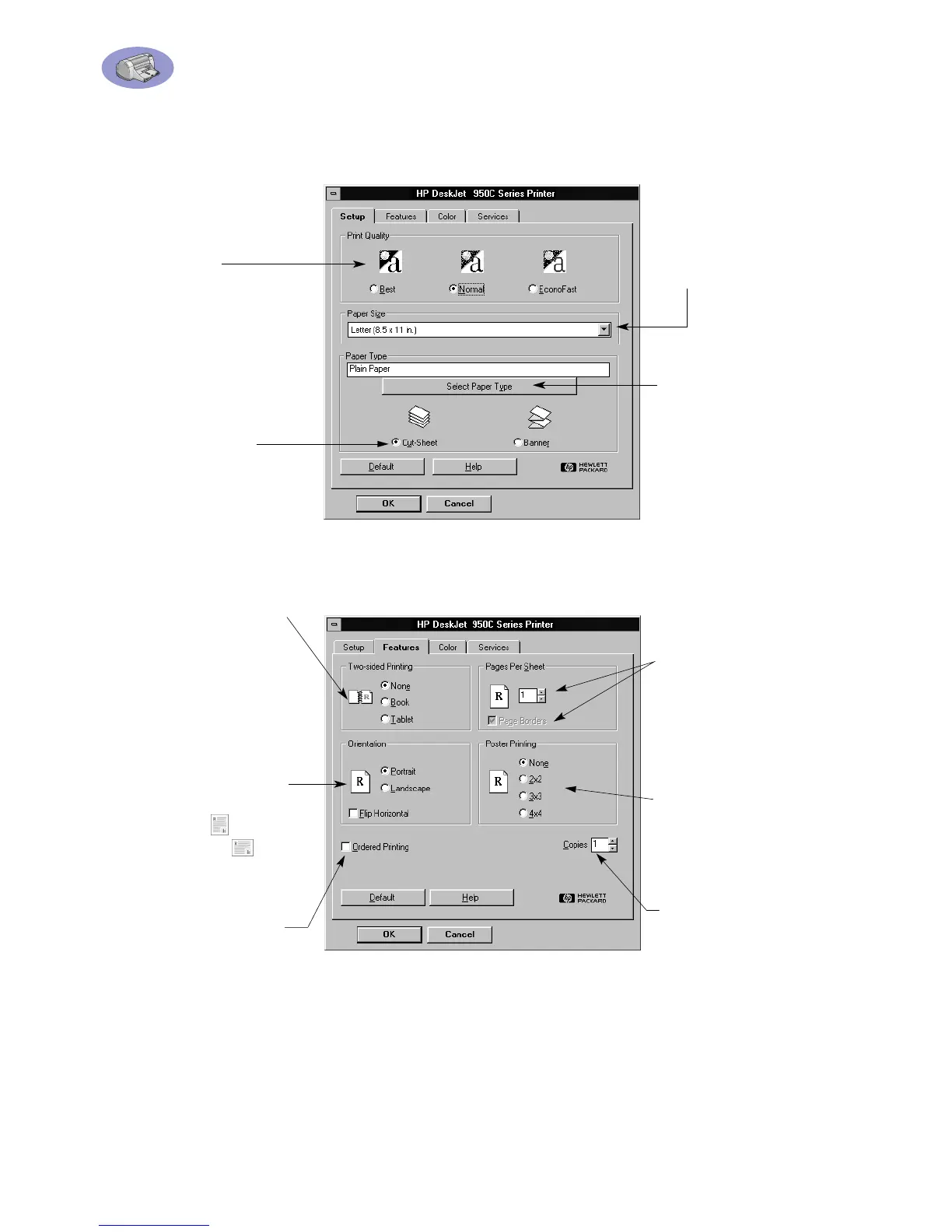 HP Deskjet 950c Series - Windows 3.1 x Setup and Features Tabs