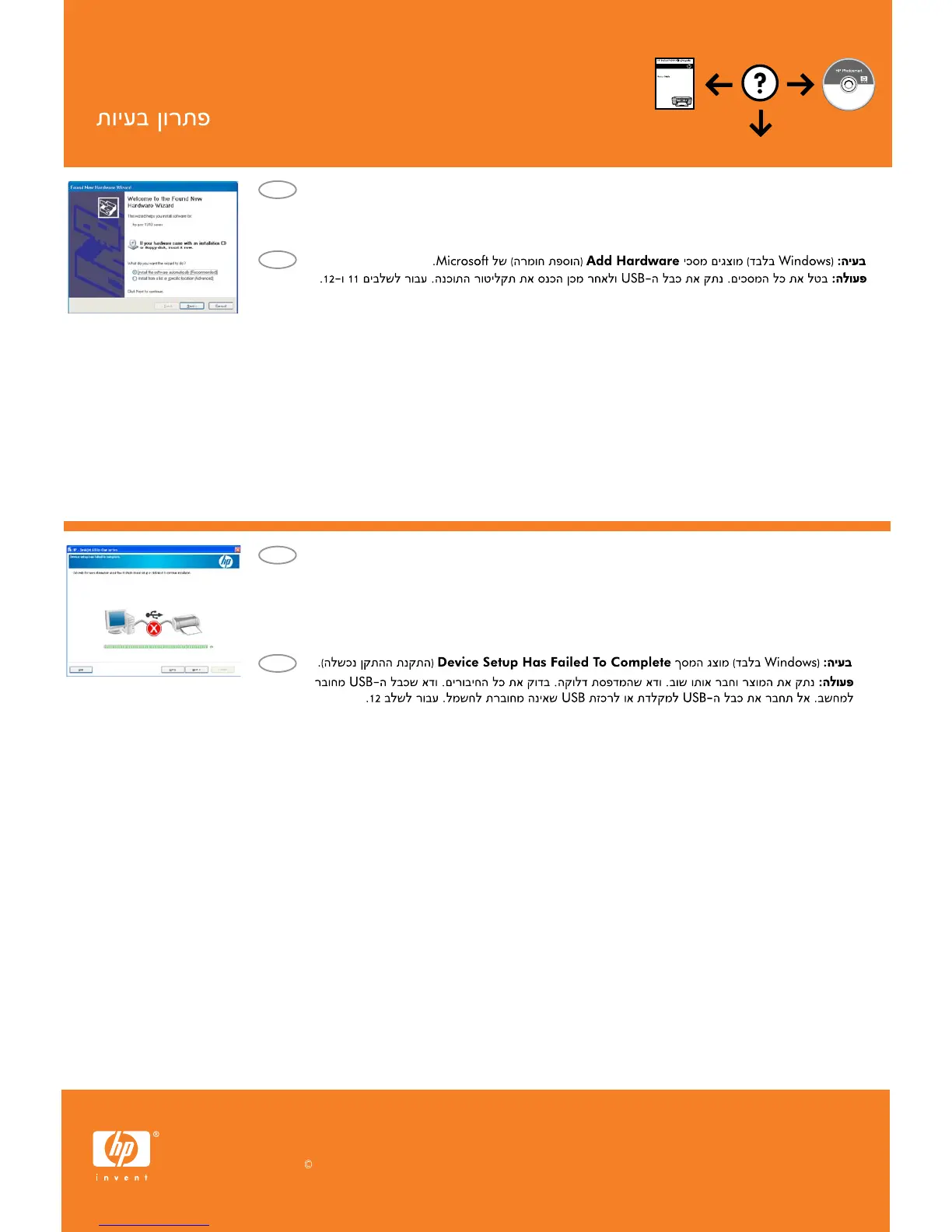 Problem: (Windows only) The Device Setup Has Failed To Complete screen displays.