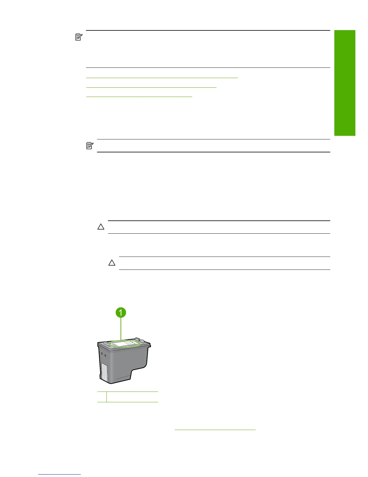 CAUTION: Do not touch the copper electrical contacts or the ink nozzles.