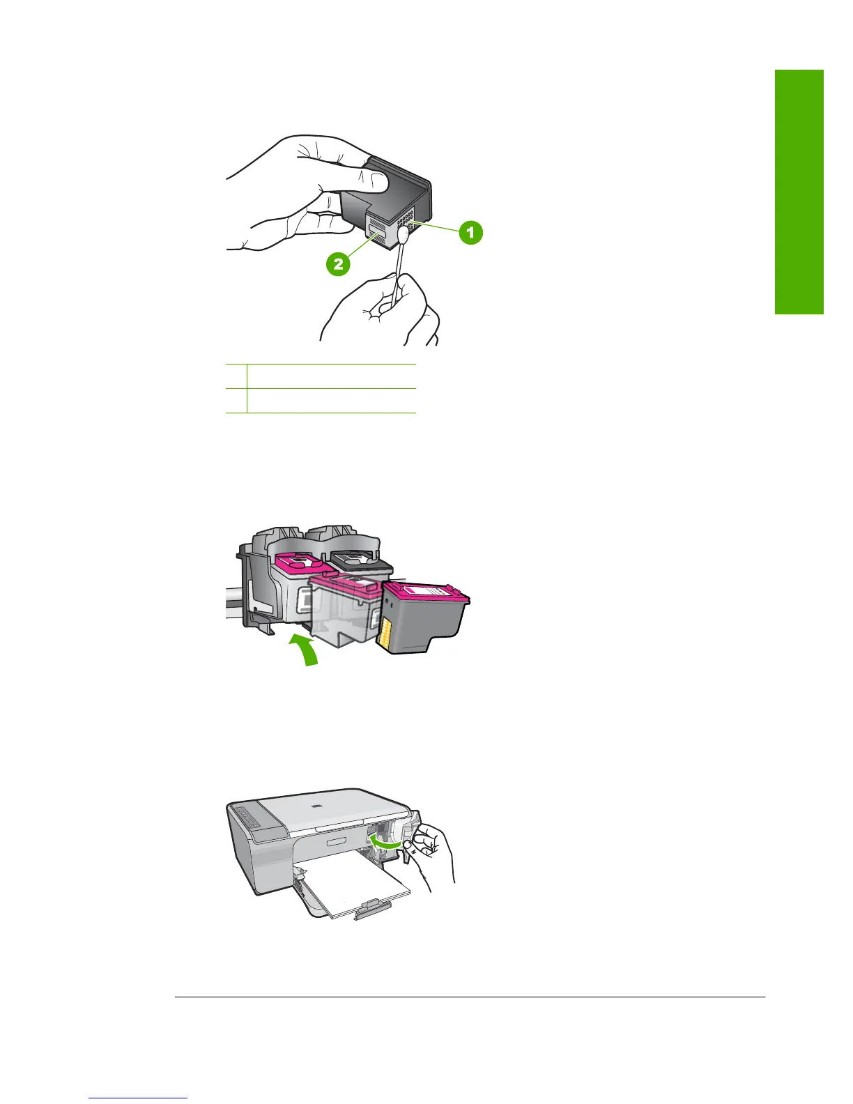 7. Clean only the copper-colored contacts. Allow the print cartridges to dry for