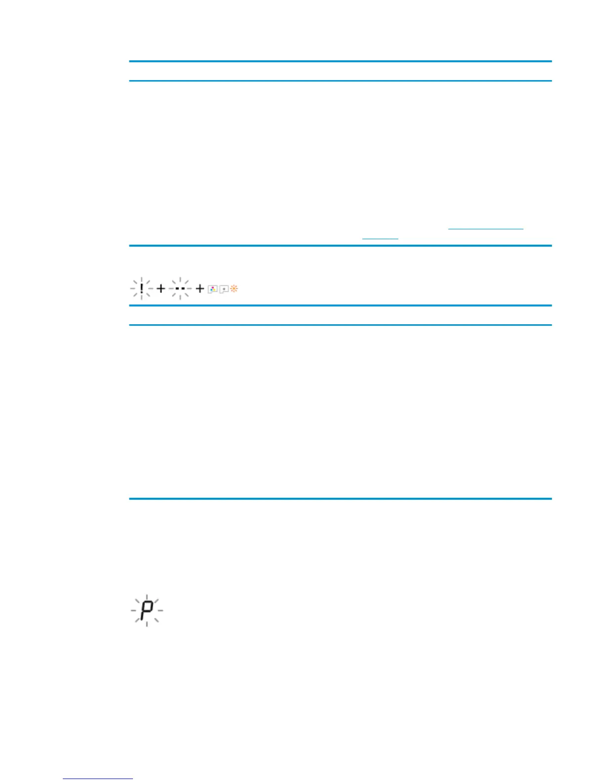 The Number of copies icon changes to a blinking P during initial printer setup. At the same time all other