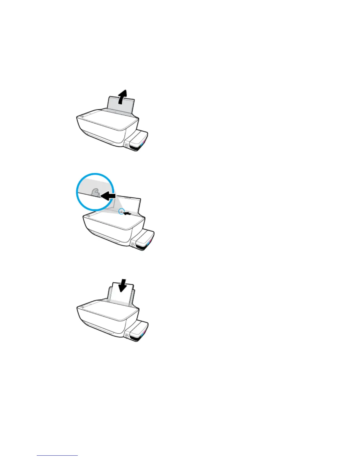3. Insert a stack of paper into the input tray with the short edge down and the print side up, and slide the