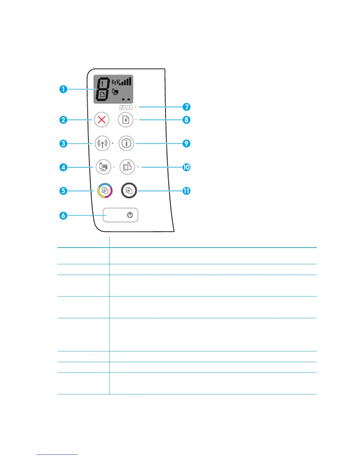 1 Control Panel Display : Indicates number of copies, printhead priming status, media errors, wireless status