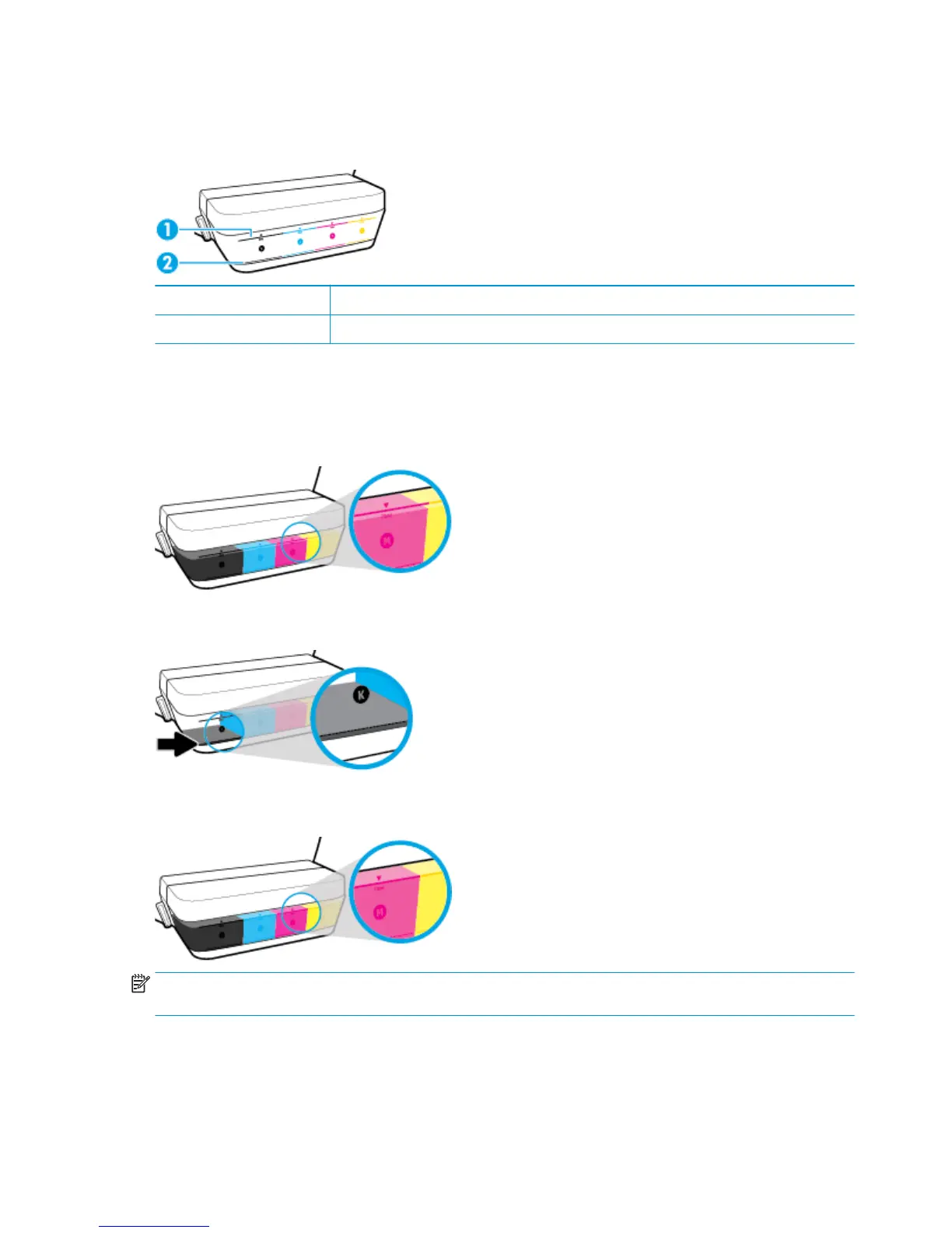 NOTE: Product service or repairs required as a result of lling the ink tanks improperly and/or using non-HP