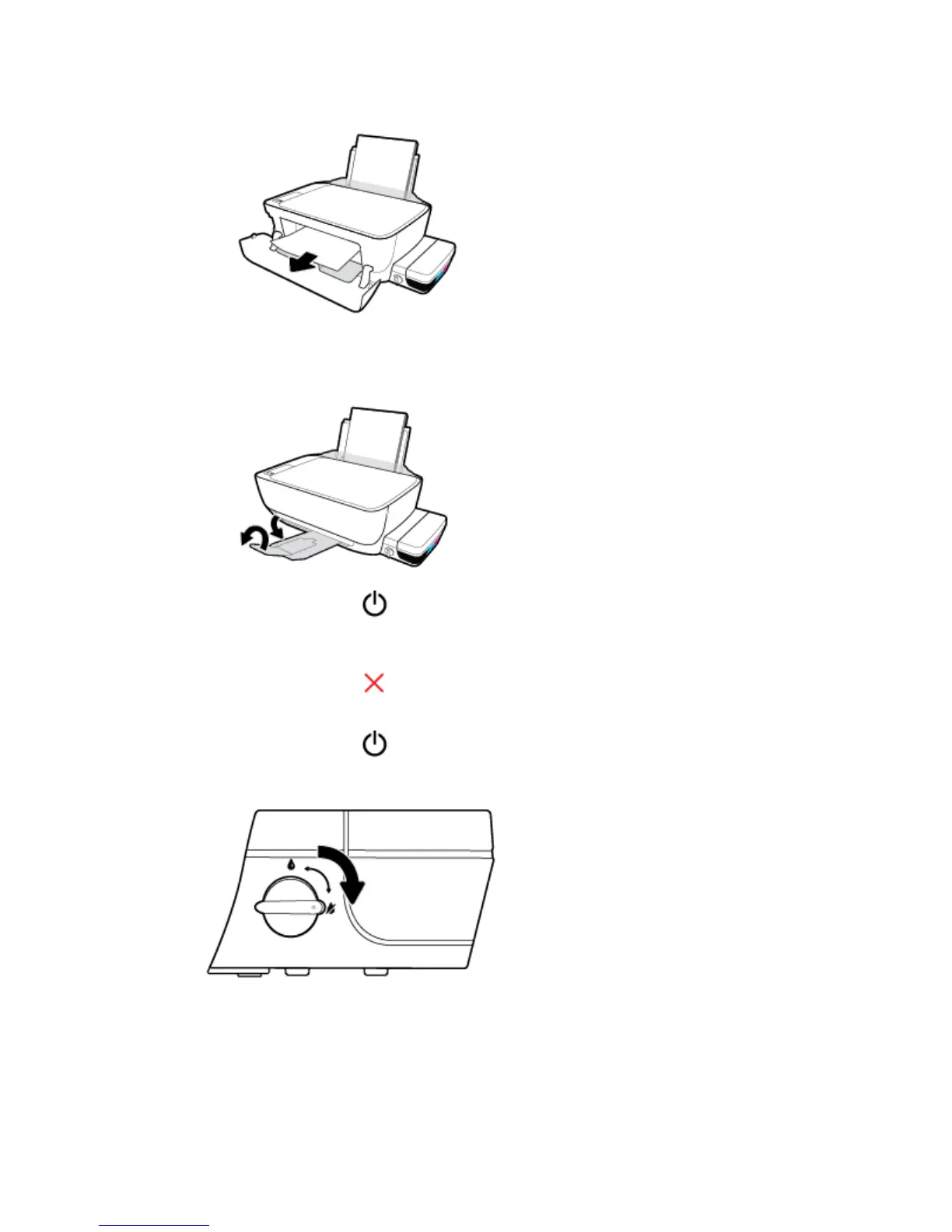 h. Pull out the output tray and the tray extender.