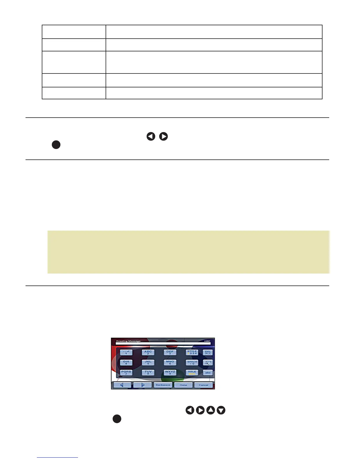• Pour sélectionner les caractères désirés, utiliser pour mettre les touches en surbrillance,