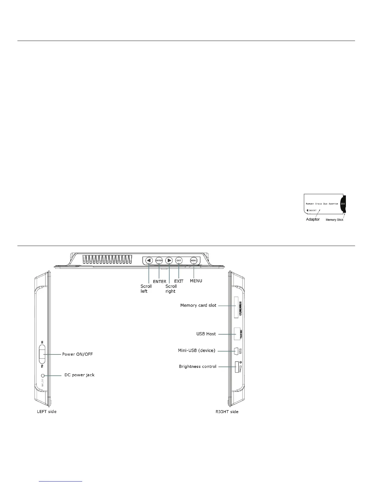 (The memory card slots, ports, and jacks in your DPF may be different than those pictured here.)