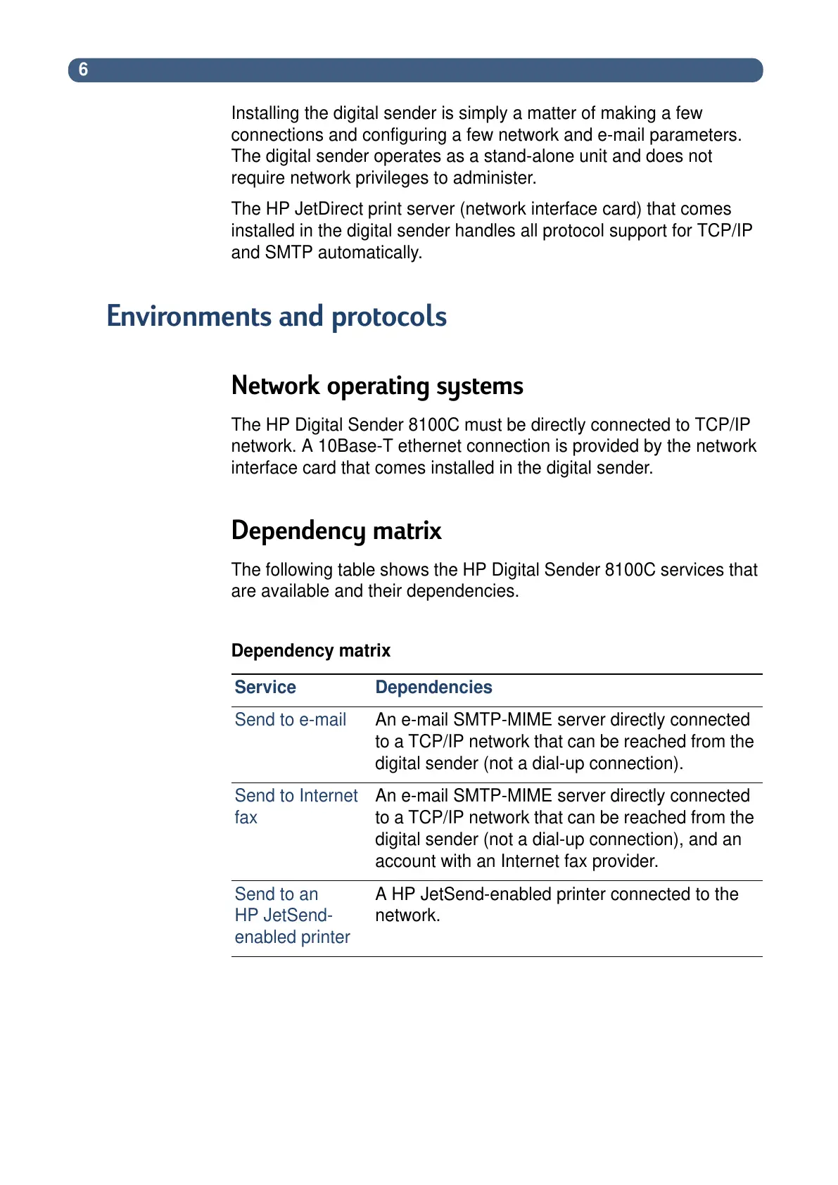 The HP Digital Sender 8100C must be directly connected to TCP/IP