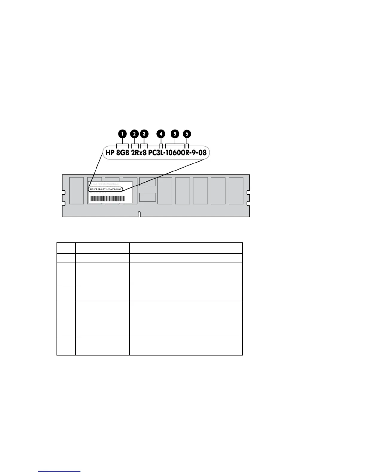 To determine DIMM characteristics, use the label attached to the DIMM and the following illustration and