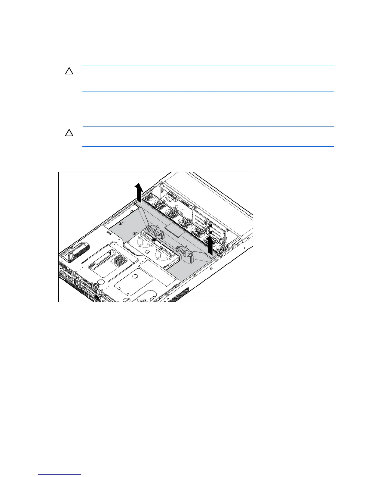 CAUTION: For proper cooling do not operate the server without the access panel, baffles,
