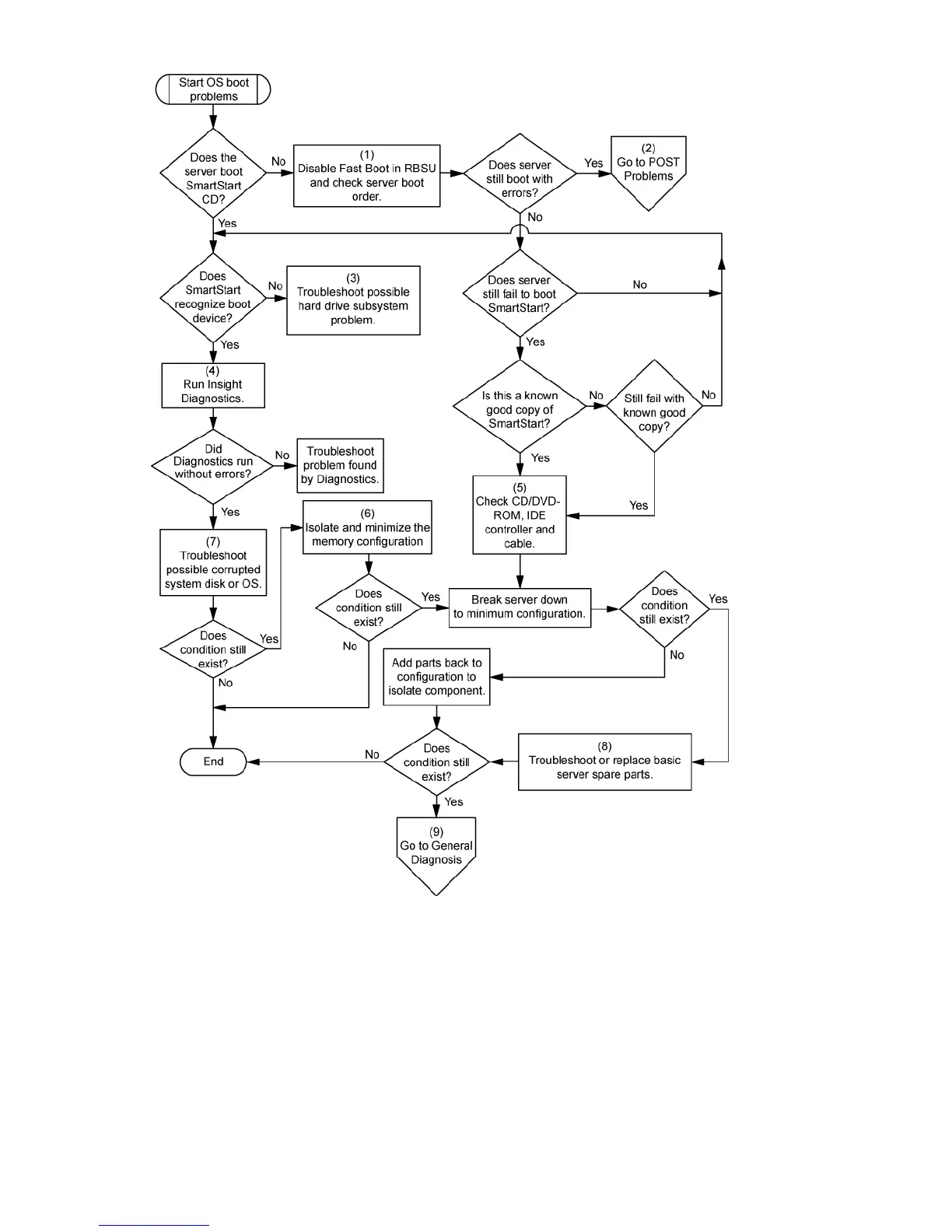 Server fault indications flowchart