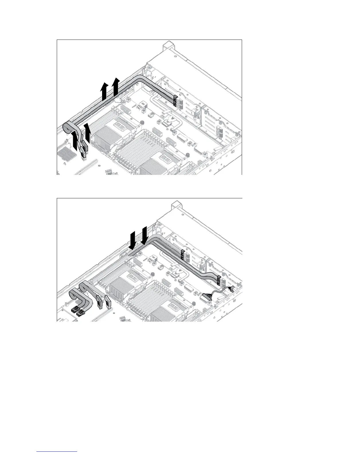 Remove the existing SAS cable from the cable guide and from the system board.