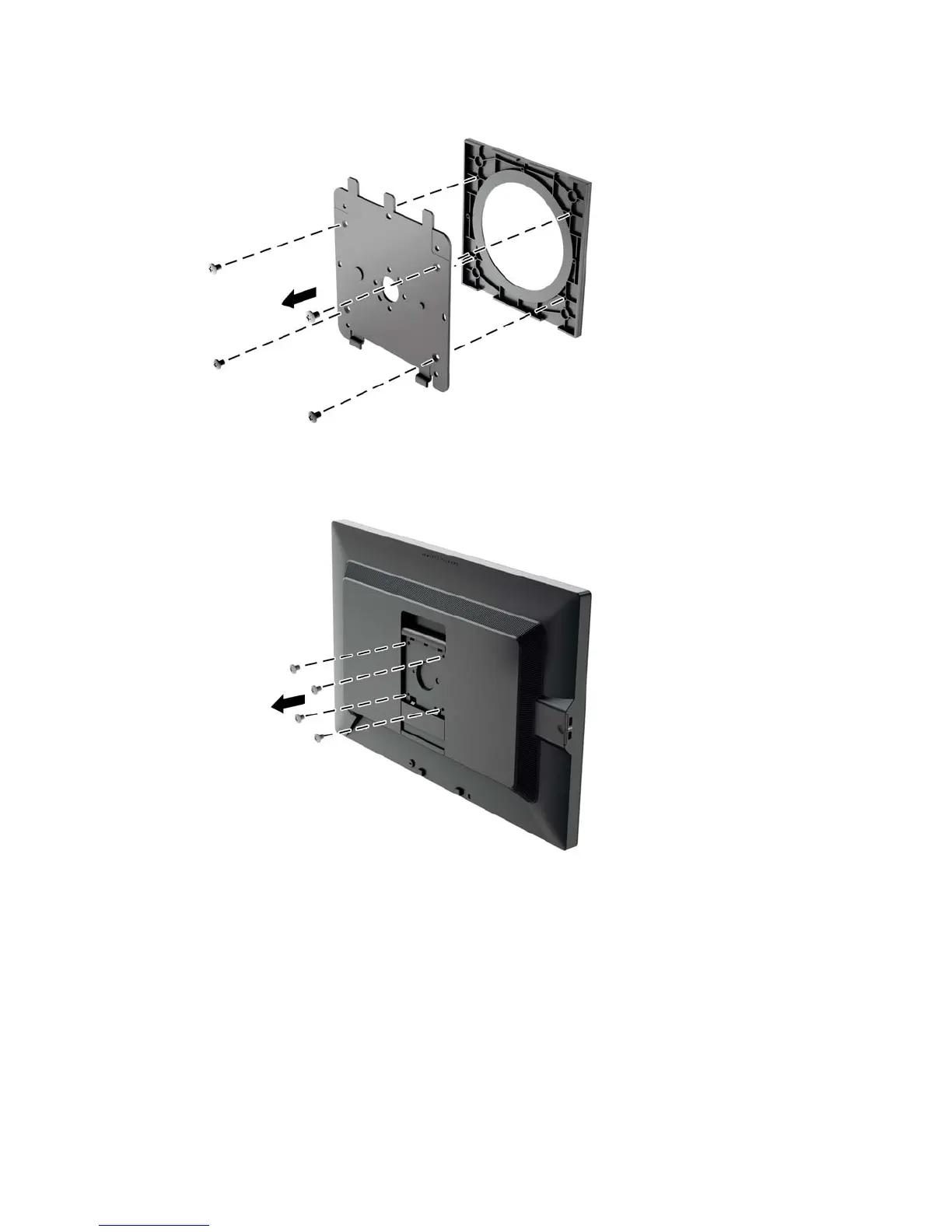 3. Remove the four screws from the VESA holes located on the rear of the monitor panel.