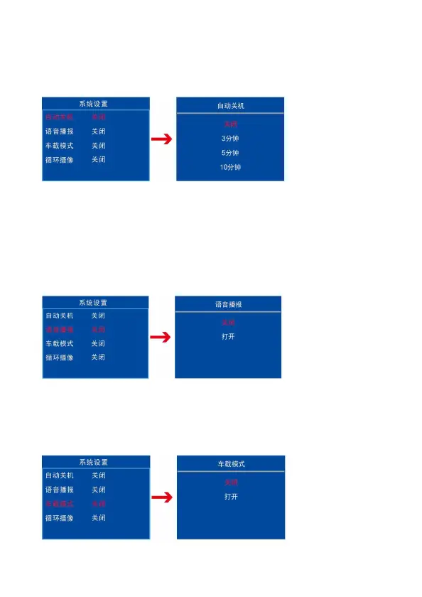 座,机器自动开机并开始录像,停止充电时 10 秒后自动关机。默认车载