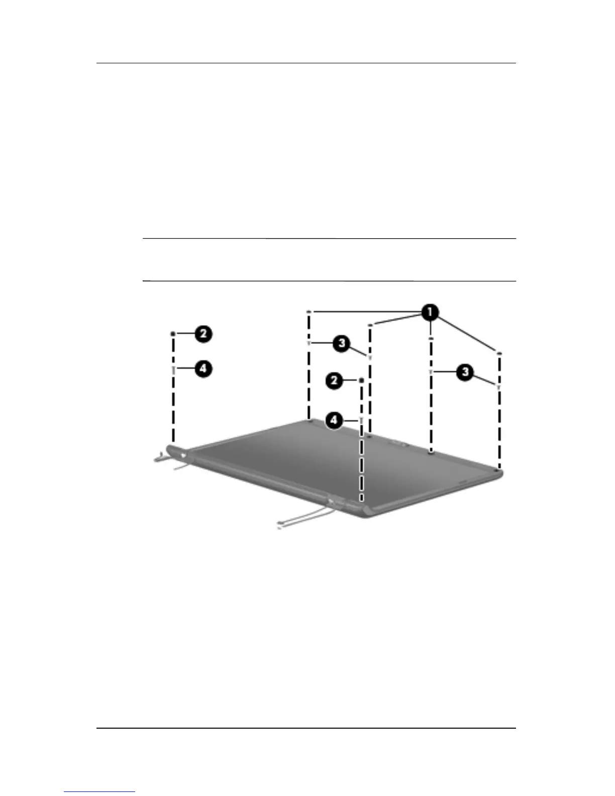 1 Four rubber screw covers on the display bezel top edge