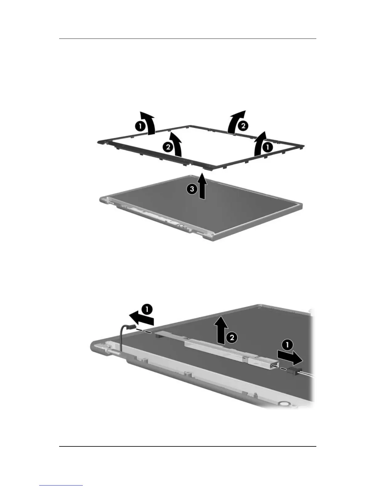 4. Disconnect all LCD panel cables 1 from the display inverter