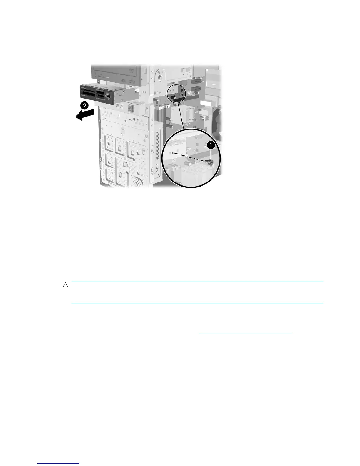 6. If you are installing a diskette drive or media card reader in a bay covered by a bezel blank, remove