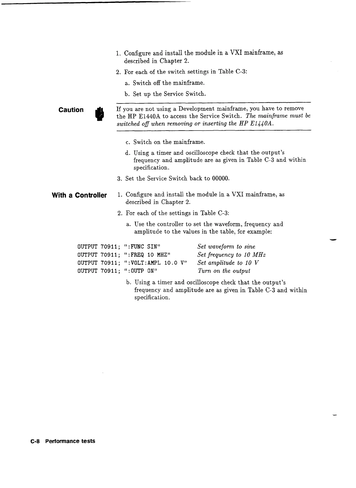 frequency and amplitude are as given in Table C-3 and within
