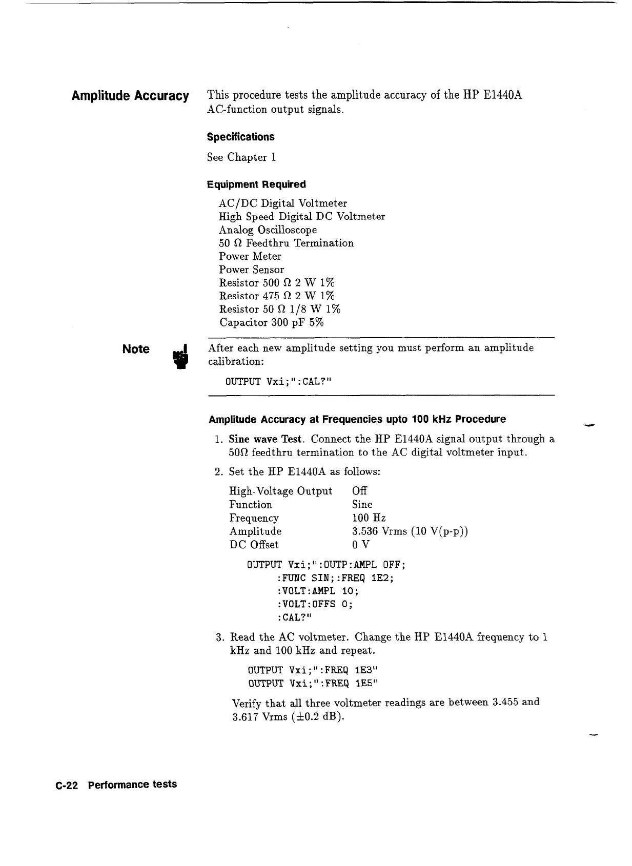 Read the AC voltmeter. Change the HP E1440A frequency to