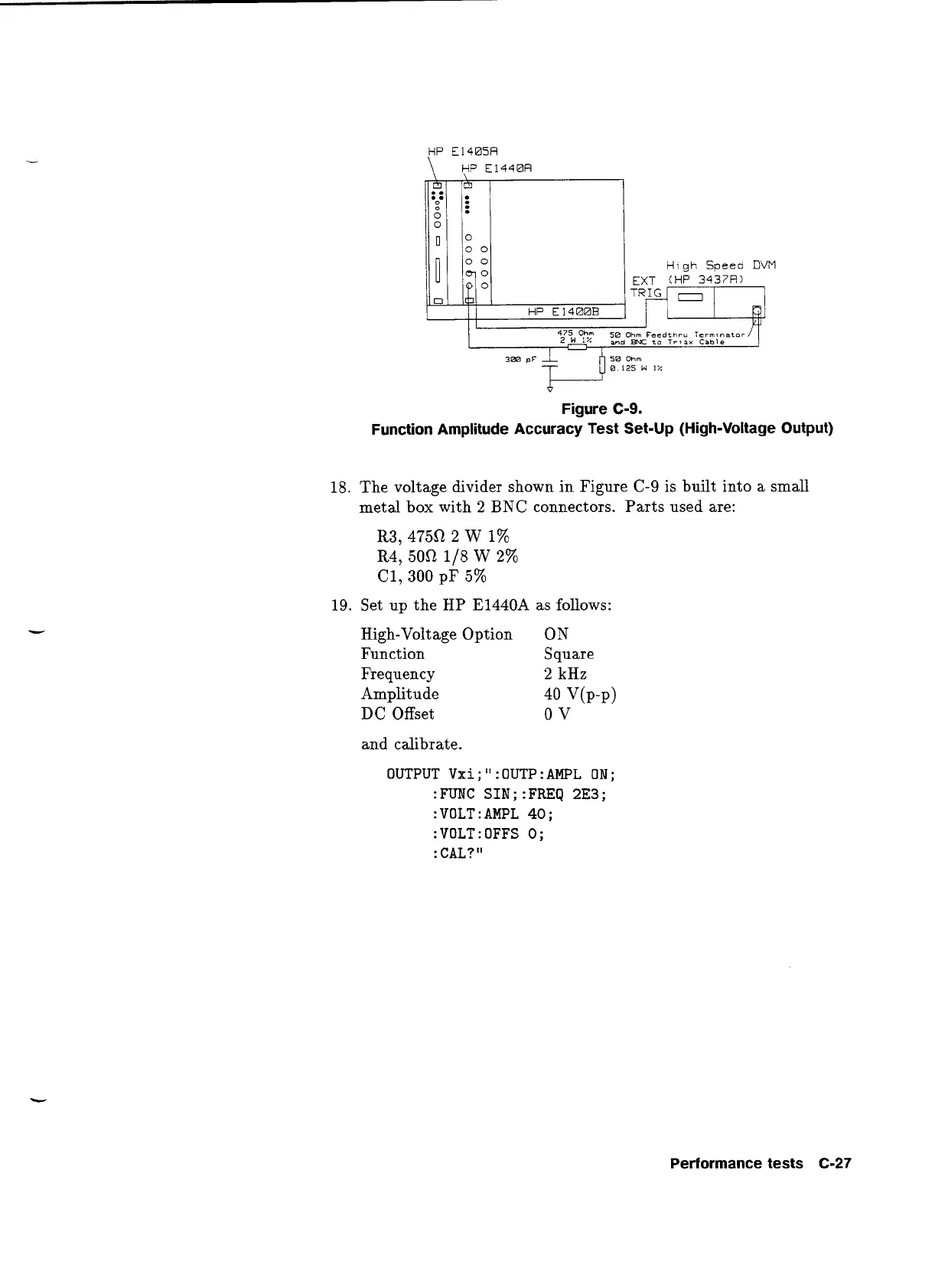 HP E1440A - Function Amplitude Accuracy Test Set-Up (High-Voltage Output