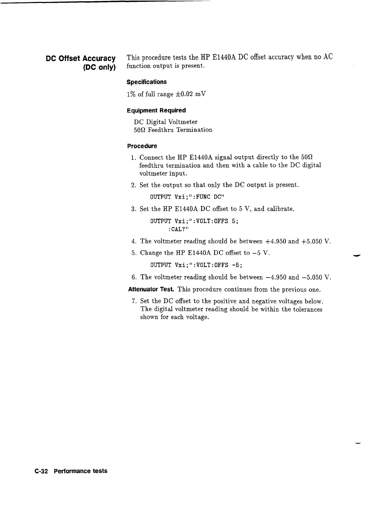 5. Change the HP E1440A DC offset to
