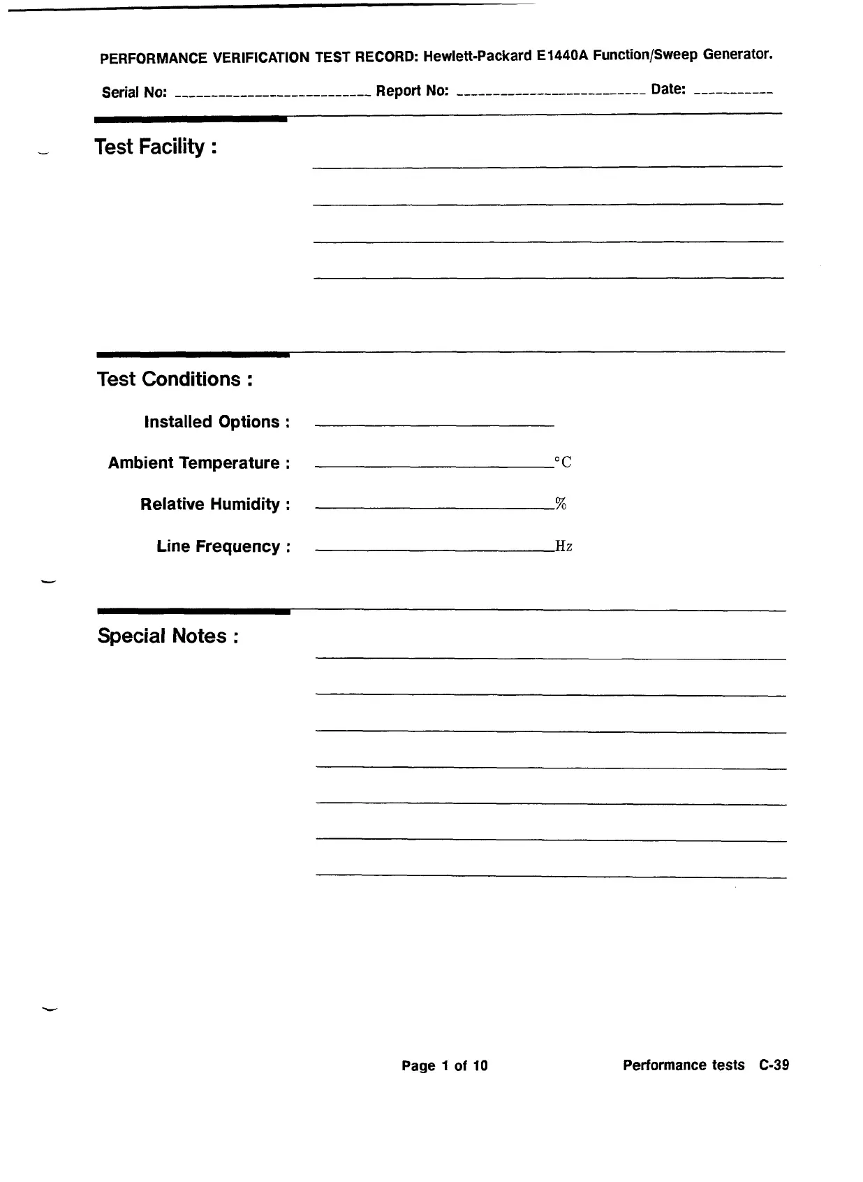 PERFORMANCE VERIFICATION TEST RECORD: Hewlett-Packard