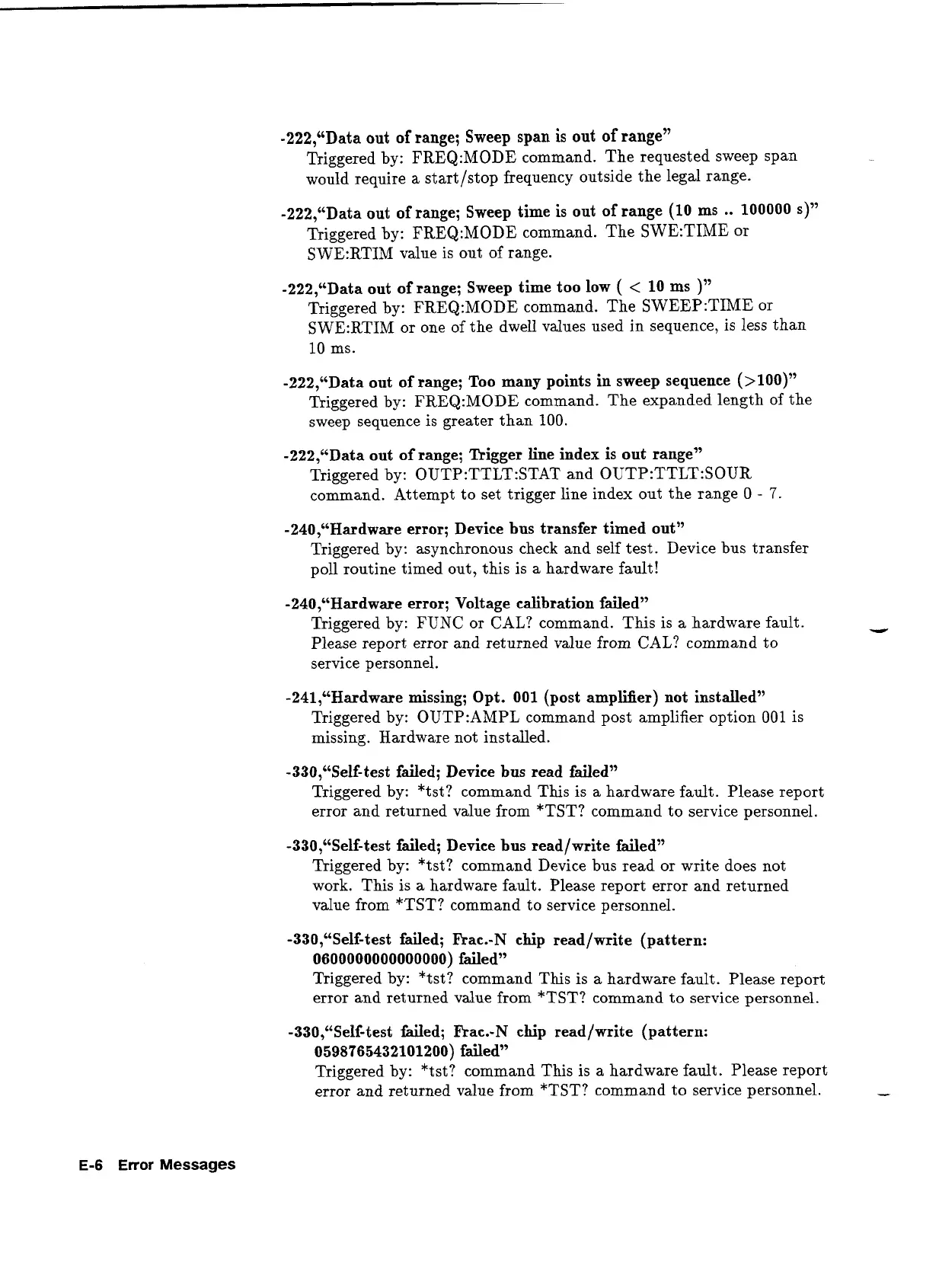Triggered by: FUNC or CAL? command. This is a hardware fault.