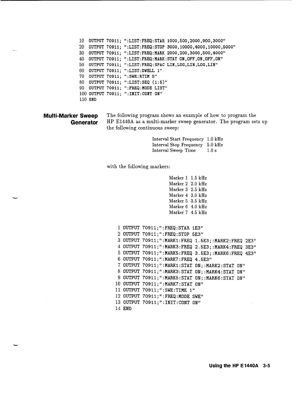 OUTPUT 7091l;":MARKS:FREQ 3.5E3;:MARKG:FREQ 4E3"