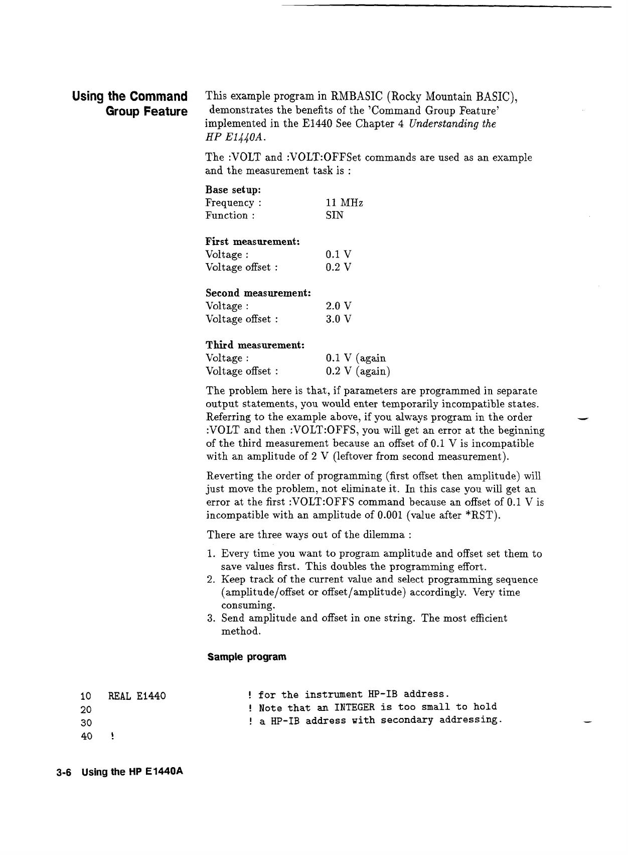 The :VOLT and :VOLT:OFFSet commands are used as an example