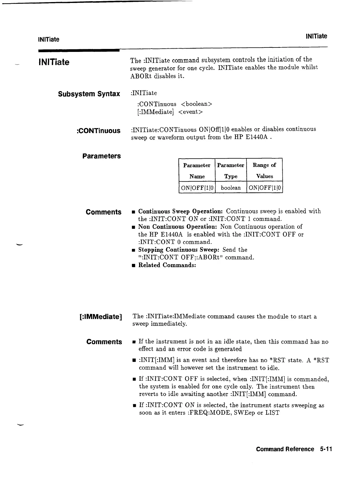 E1440A is enabled with the :INIT:CONT OFF or