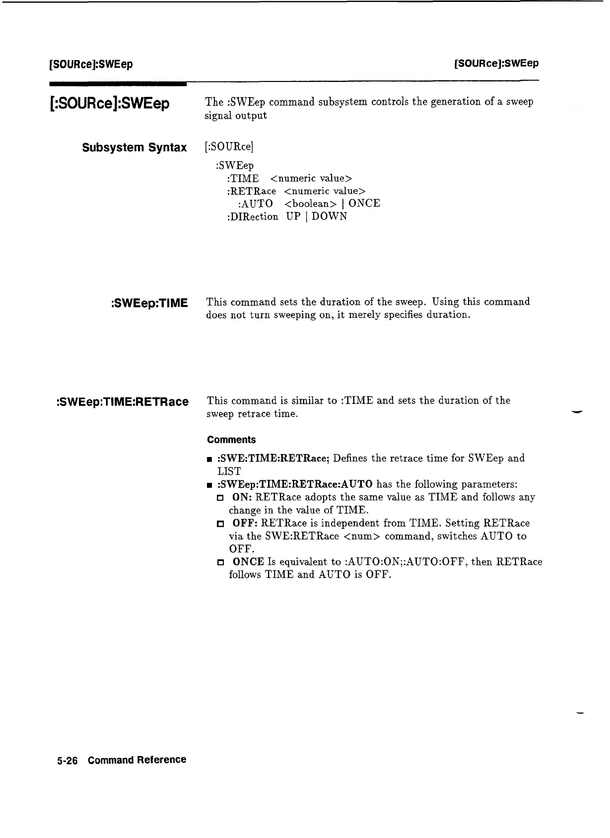 Is equivalent to :AUTO:ON;:AUTO:OFF, then RETRace